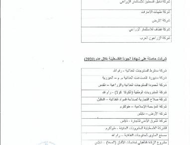 *مرفق الشركات الحاصلة على شهادة حلال وشهادة الجودة الفلسطينية خلال (2020)
